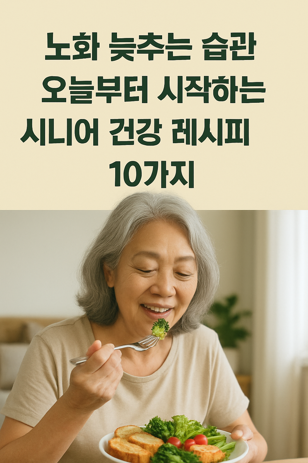 "노화는 피할 수 없지만, 그 속도는 우리가 조절할 수 있습니다. 오늘 소개한 10가지 습관 중 하나라도 오늘부터 실천해 보세요. 1년 후, 여러분의 몸은 분명히 지금과 다를 거예요. 건강한 노후를 위한 첫걸음을 지금 떼어보시겠어요?"